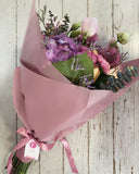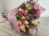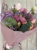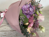 Ramo de 24 rosas, lisianthus, hortensias, limonium y mini dolar